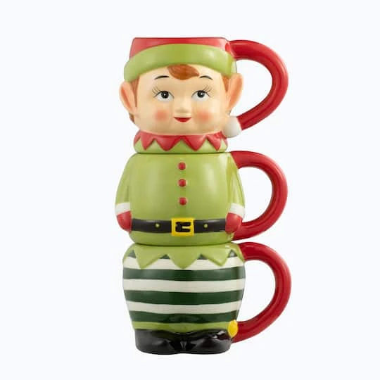 Add a touch of whimsy and fun to your kitchen collection this holiday season with the Set of 3 Stacking Elf Mugs by Mr. Christmas. This jolly vintage-inspired Elf mug trio adds a fun twist to a holiday classic. With his red and green outfit and stripy pants, the Elf comes to life with hand-painted details. Each adorable ceramic mug features a different Elf design. A perfect gift for any host or hostess, made even better when it’s filled with eggnog or hot cocoa. The Set of 3 Stacking Elf Mugs is a great way to deck the halls at home this Christmas.
