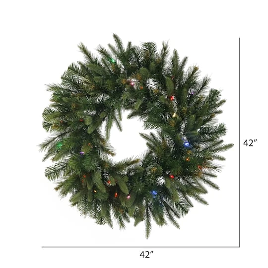 This wreath comes prelit with multicolor Dura-Lit LED Mini lights that are hand wrapped to minimize the appearance of wire. Vickerman’s dura-lit technology guarantees that if one light goes out, the rest stay lit. This cashmere tip features a mixed blend of realistic and traditional needles to create a natural yet full look. Add some holiday spirit to your front door or mantle with this cashmere wreath.