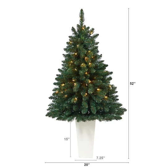 Rock around this West Virginia Mountain Pine Artificial Christmas Tree for a magical Xmas. A robust silhouette – that mimics the foliage and texture of evergreens – with 322 upward sloping, easy-to-bend branches, can house a symphony of holiday ornaments and decorations. Arriving pre-strung with 100 clear lights to eliminate tangles, set any home aglow in harmony. Housed in a tower planter, this artificial Christmas tree is 52″ high and perfect to display in compact spaces – such as, dorms, kids’ rooms, or lonely corners. Your artificial Christmas Tree will look beautiful for years to come; simply wipe clean with a soft dry cloth when needed.