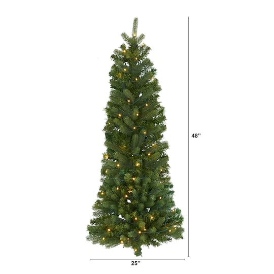 If you have limited room to decorate this holiday season, why not opt for a space-saver: a half wall artificial Christmas tree. Perfect for the smallest, tightest spaces because of its flat walled back, it consists of easy-to-bend branches to hold your decorative accents while still allowing you the ability to display it just about anywhere. Arriving pre-strung with clear LED lights to keep decorating stress-free and carefully stabilized on an accompanying stand, this versatile 4 foot tall artificial Christmas tree can help evoke the holiday spirit year after year.