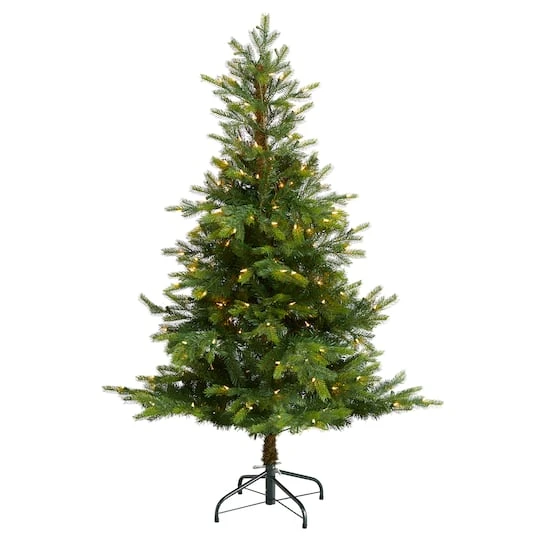 Bring the outdoors in, literally, with this rustic, natural looking, North Carolina Spruce Artificial Christmas Tree. The sparse by design allows you to showcase your favorite ornaments on the 375 easy-to-bend branches, this artificial Christmas tree gets a bit fluffier on the bottom. Inspired by nature and designed by our leading interior decorators your tree arrives pre-strung with 200 clear LED lights – saving you time and money. Standing at 5 ft. from a metal stand (included in height), display in compact spaces that need some extra Christmas love. Maybe kids’ room, foyer or next to the mantel.