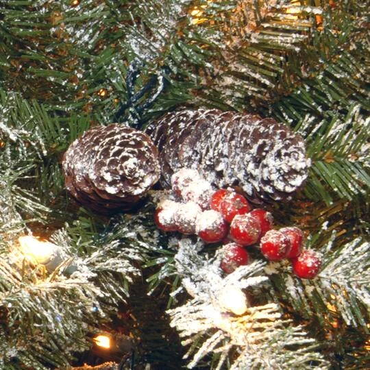 10ft. Pre-Lit Frosted Swiss Pine Artificial Christmas Tree With Berries, Clear LED Lights