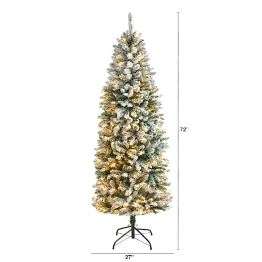 Transform your home into an enchanting winter wonderland with this flocked artificial Christmas tree. If you dream of a white Christmas, these artificial trees are designed to mimic the texture and foliage of real trees with their upward sloping branches that can easily house mini ornaments. Pre-strung with 250 LED lights for a warm, candle-like glow, all that’s missing are your ornaments. Standing at 6 ft. from a metal stand (included in height), this flocked tree complements spaces that need some Christmas love. Everyone can have a white Christmas even if they live in the tropics. Item will need to be re-shaped when removed from the box; this tree can easily bend for reshaping purposes. Please separate and fluff to achieve desired fullness. Measurements are calculated from the furthest outstretched dimension. This item is manufactured using synthetic materials and are well designed and constructed to be life-like in appearance. No maintenance needed for this artificial tree. Wipe clean with a soft dry cloth.