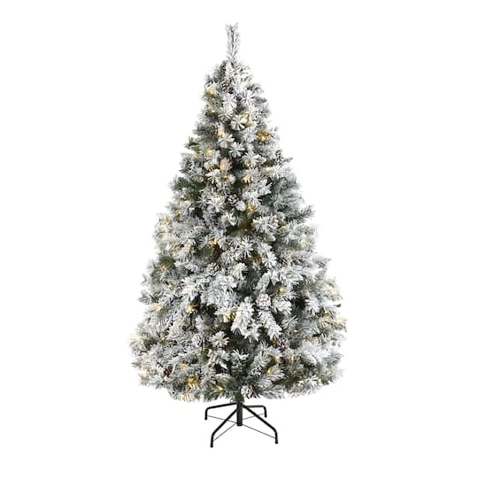 Evoke a winter wonderland this holiday with this Flocked White River Mountain Pine Artificial Christmas Tree. Entirely maintenance-free, this winter-inspired Christmas tree boasts soft looking foliage with easy-to-bend branches for showcasing decorative ornaments. Lightly frosted with faux snow to help evoke the ultimate white Christmas setting, it arrives pre-strung with clear LED lights to help eliminate tangles and make decorating stress-free. Carefully stabilized on an accompanying stand and reaching 6ft. high when in full display, this lightly frosted artificial Christmas tree will undoubtedly transform any home or office into a joyous holiday environment for years to come.