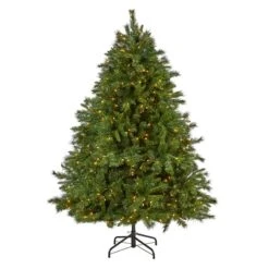 Bring the holiday spirit into your home with the Slim Westford Spruce Artificial Christmas Tree. This pre-lit artificial tree features green branches, an on/off foot pedal extension cord, and clear incandescent lights to brighten your home for a dazzling Christmas display. With life-like pine needles and a realistic appearance, this artificial tree is sure to add warmth to any room or space for years to come. The included sturdy metal base will safely and steadily support your tree and decorations. Plus, if one bulb burns out, the rest remain lit. Constructed from flame-retardant and non-allergenic materials, this tree provides a safer alternative to real trees.
