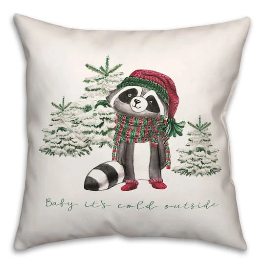 Baby Cold Outside Raccoon 18×18 Throw Pillow