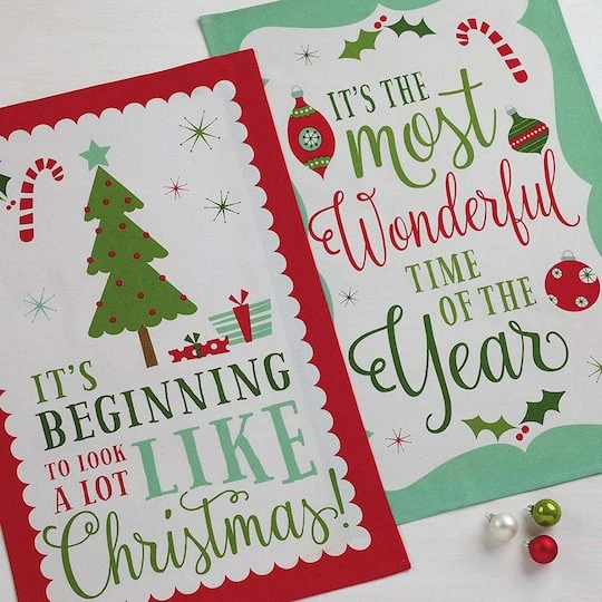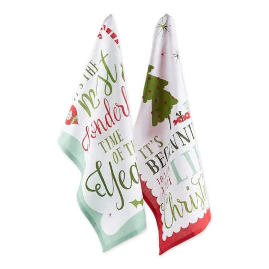 Set of 2 dishtowels to tackle all of your drying and cleaning kitchen tasks. Wash with dold water in gentle cycle and tumble dry low. Do not bleach them or run them through a hot dryer. The festive design coordinates with most kitchen décor to add fun and joy to your kitchen. Perfect gift for Christmas party, holidays, birthdays, housewarming, and more.