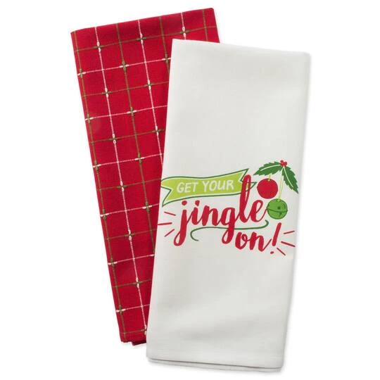 Each set includes 2 dishtowels to tackle all of your drying and cleaning kitchen tasks. Cotton Fabric, Machine Washable. Wash with Cold Water in Gentle Cycle and Tumble Dry Low. Do not bleach them or run them through a hot dryer. The festive design coordinates with most kitchen décor to add fun and joy to your kitchen. Perfect gift for holiday parties, birthdays, housewarming, and more.