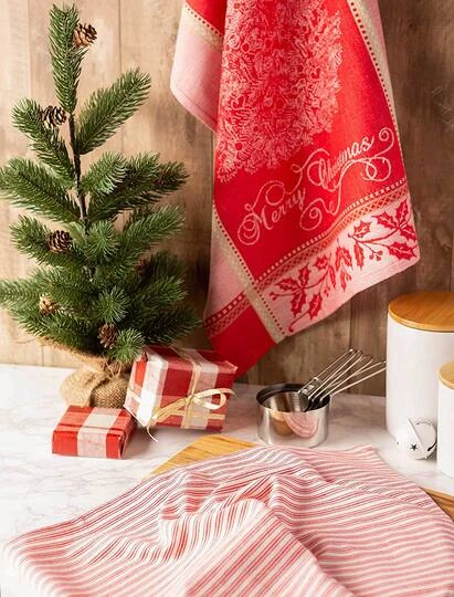 This vintage Christmas dishtowel set can coordinate with most kitchen décor to add color and joy. These easy care dishtowels are festive, fun and can tackle any mess made.