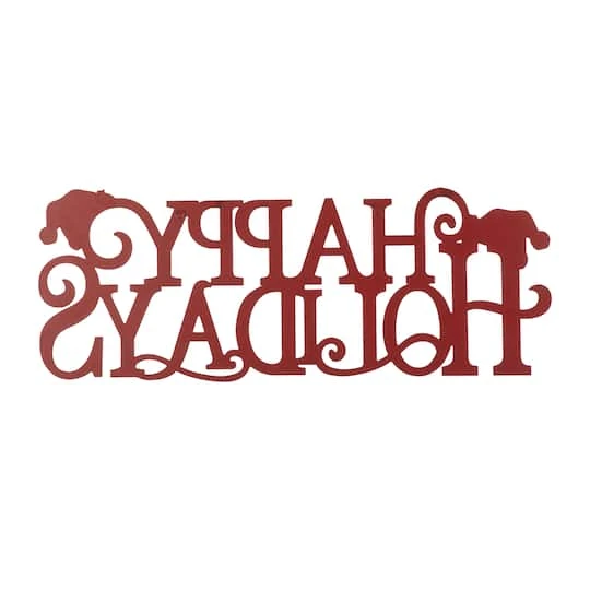 This crafted red iron Christmas sign was digitally cut and hand painted. It depicts the words HAPPY HOLIDAY to create a cheerful Christmas atmosphere.
