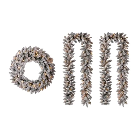 Create the perfect holiday touch for your home with this garland and wreath set from Glitzhome. The snow flocked Christmas wreath is crafted with pine needle tips and adds a touch of charming light and cheer to your front door or window during your holiday season. The 9-foot snow flocked garland provides ample length to easily adorn doors, mantles or banisters, making this versatile decoration ideal for any situation. Each of the 220 tips is modeled to a pine tree branch while the snow flocked design creates a winter wonderland around your home. Several large pinecones decorations among the needles add an extra holiday touch to this garland. It creating the perfect holiday touch for your home.