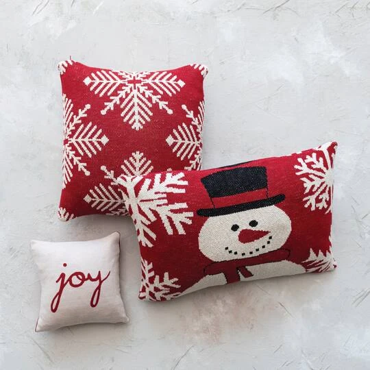 This elegant, two-sided cotton knit throw pillow features a festive snowflake design. It will look lovely on your couch or reading chair with a matching blanket.