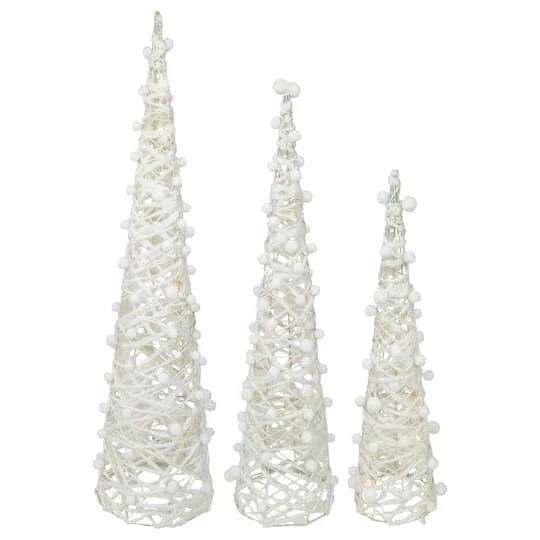 This battery-operated tree set is the perfect embodiment of shine and beauty! These lighted accents are embellished with shimmering glitter delivering the charm of flawlessly designed Christmas trees. LED lights use 90% less energy and are cool to the touch. If one bulb burns out the rest will stay lit. There is a multifunction switch located on battery pack allows you to select different light settings such as, steady on twinkling and off. Station these adorning pieces anywhere and fill your home with festive vibes!
