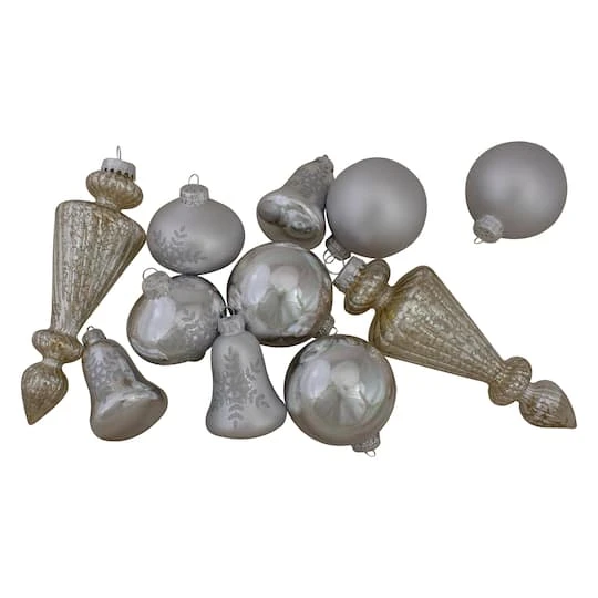 These collection of silver glass ornaments is great way to add to your Christmas collection – or start one from scratch! These ornaments come in an assortment of patterns, textures and shapes sure to make your tree sparkle and shine.