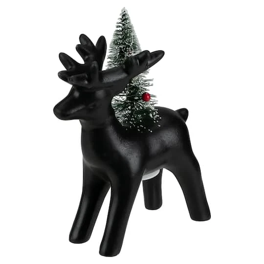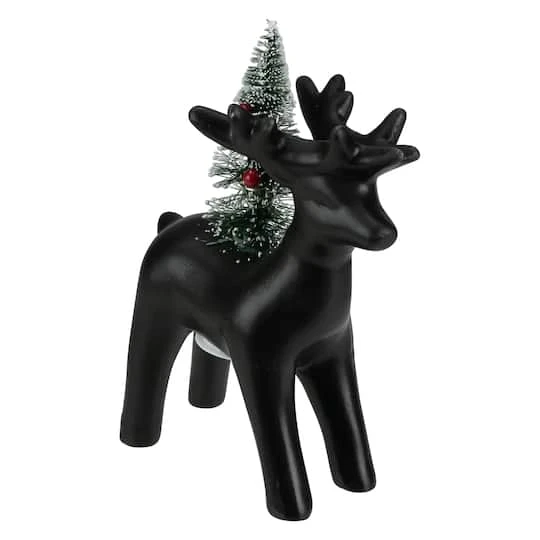 This sleek reindeer figure with a lighted Christmas tree makes a wonderful addition to your holiday décor. The LED lights on the tree give off a soft but bright glow. It can be placed anywhere because it is battery-operated. Perfect for mantles tables and as part of your holiday centerpiece.