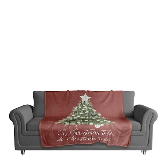 Oh Christmas Tree Coral Fleece Throw