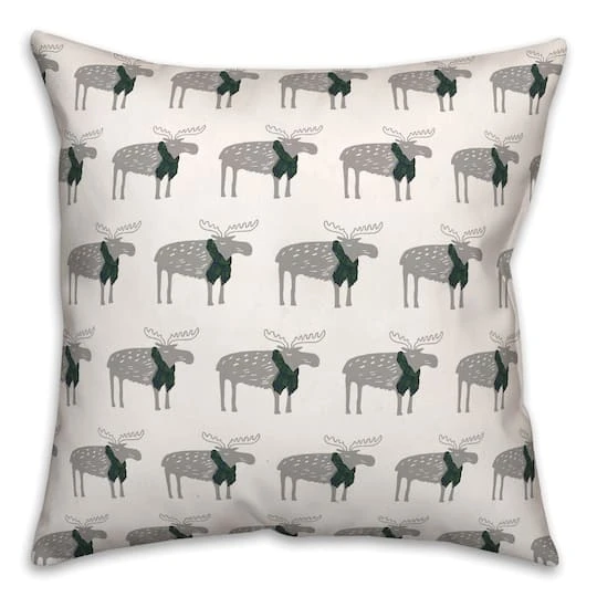 Plaid Scarf Moose Pattern 18×18 Throw Pillow