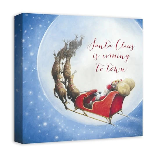 Santa Sleigh Painting Moon 16×16 Canvas Wall Art
